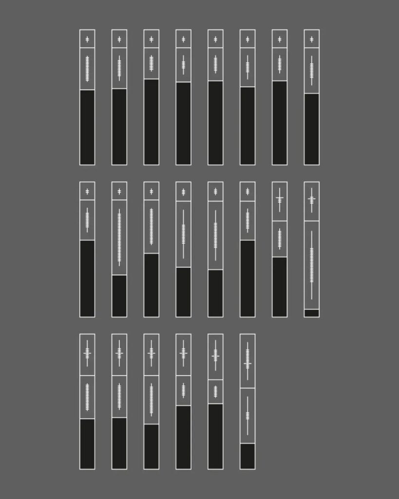 La programación de esta obra se realizó en Arduino IDE y tiene como característica particular una curva no lineal de arranque para el incremento de la velocidad de los engranes. El objetivo de esta curva es garantizar el torque al inicio del movimiento, mantener la integidad de todos los componentes y evitar vibraciones no deseadas. Otra característica interesante de este programa es que maneja una lógica complementaria en las señales para permitir usar conexiones en modo Sink, lo que permite usar menos componentes para garantizar señales adecuadas para el driver de motores a pasos.